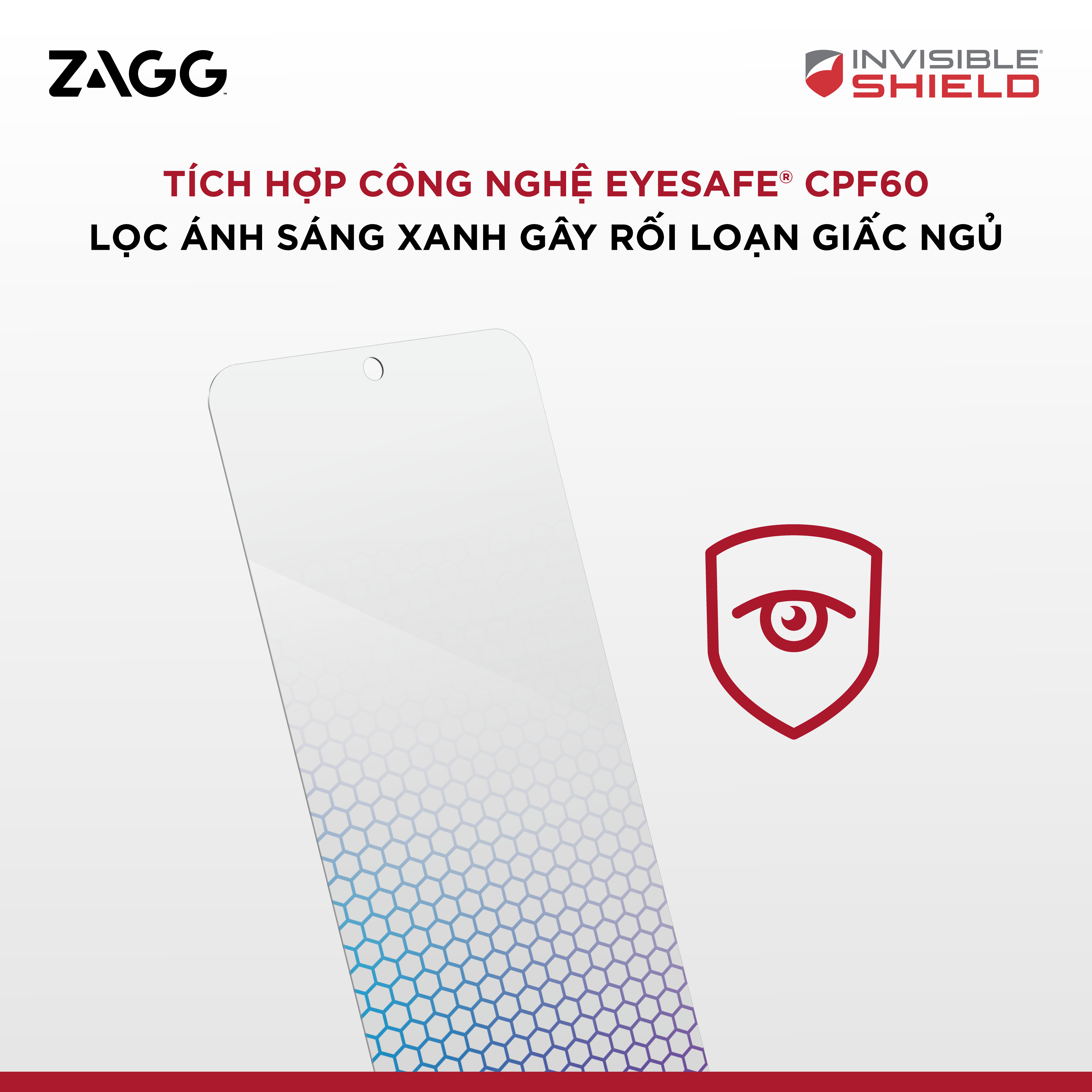 Kính ZAGG ứng dụng công nghệ độc quyền CPF60, được chứng nhận kiểm định bởi UL, có khả năng lọc chọn lọc ánh sáng xanh trong vùng bước sóng 435–460nm – dải ánh sáng ảnh hưởng trực tiếp đến hormone melatonin gây rối loạn giấc ngủ. Nhờ đó, CPF60 giúp giảm mỏi, khô và nhức mắt khi dùng điện thoại trong thời gian dài, đồng thời hỗ trợ duy trì nhịp sinh học tự nhiên, cho giấc ngủ sâu và tinh thần cân bằng.