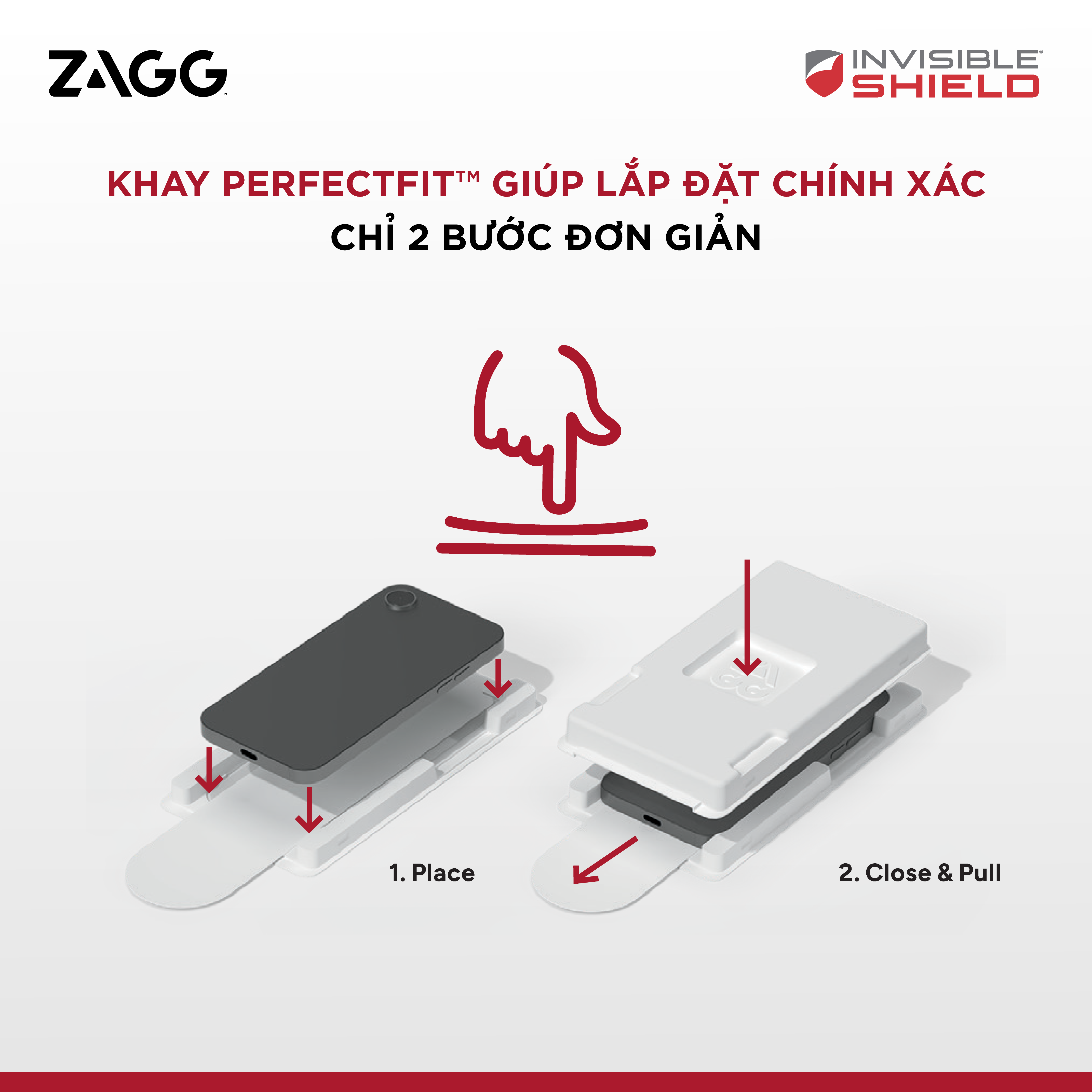 Không còn nỗi lo căn chỉnh sai lệch khi dán kính. Với PerfectFit™, người dùng chỉ cần hai bước đơn giản để gắn kính chuẩn xác, vừa khít màn hình, trong khi khay thông minh hỗ trợ lắp đặt nhanh chóng, tạo bề mặt phẳng mịn và bám chắc như màn hình nguyên bản.