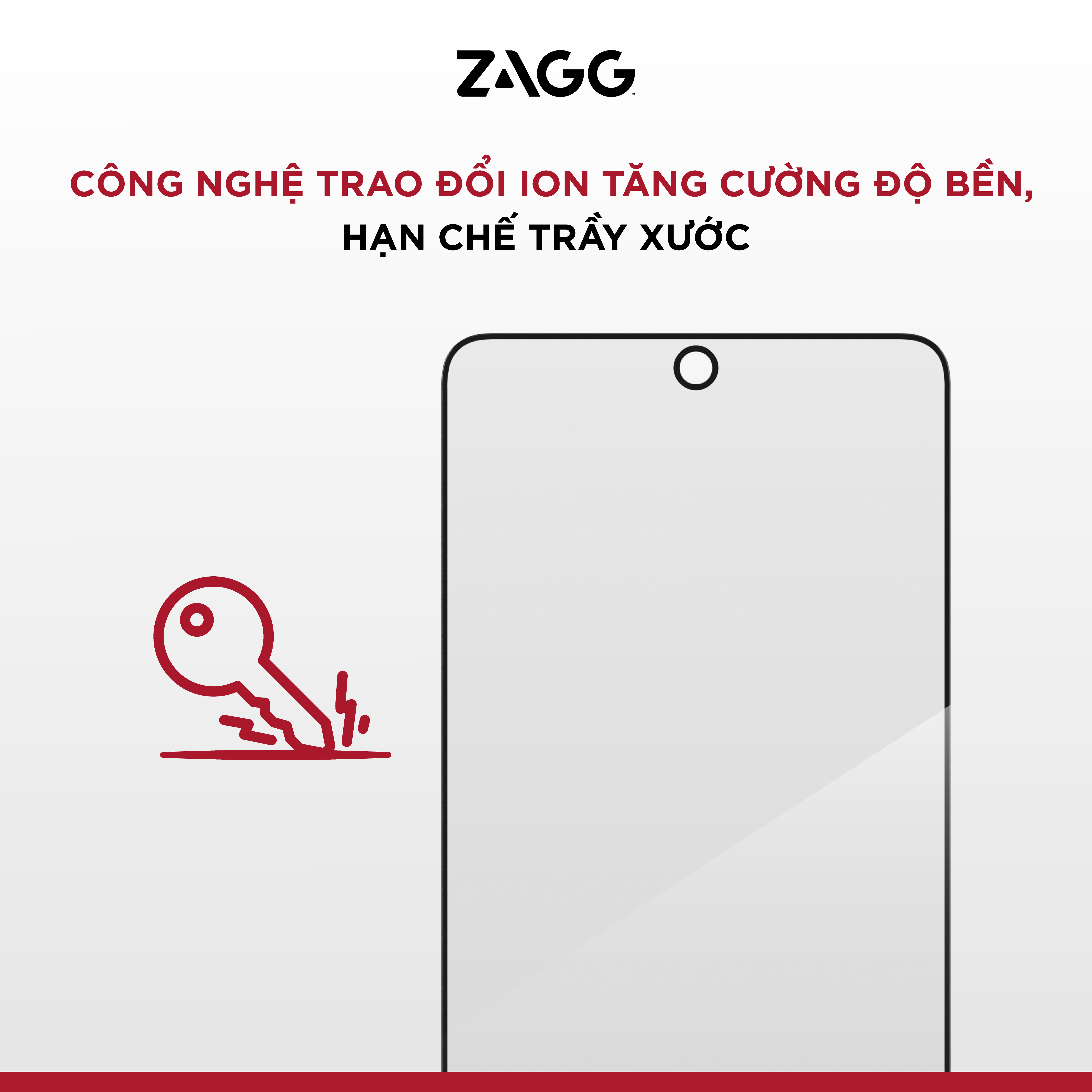 ZAGG Plus Edge cho Samsung S26 series được gia cường bằng công nghệ trao đổi ion, giúp tăng độ bền cho bề mặt kính và hạn chế trầy xước hiệu quả trong quá trình sử dụng hằng ngày.