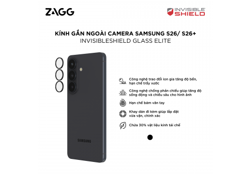 Tên sản phẩm: Kính gắn ngoài Camera Samsung S26/ Samsung S26+ - InvisibleShield Glass Elite