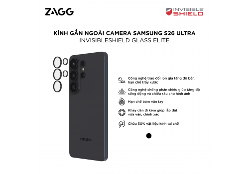 Kính gắn ngoài Camera Samsung S26 Ultra - InvisibleShield Glass Elite