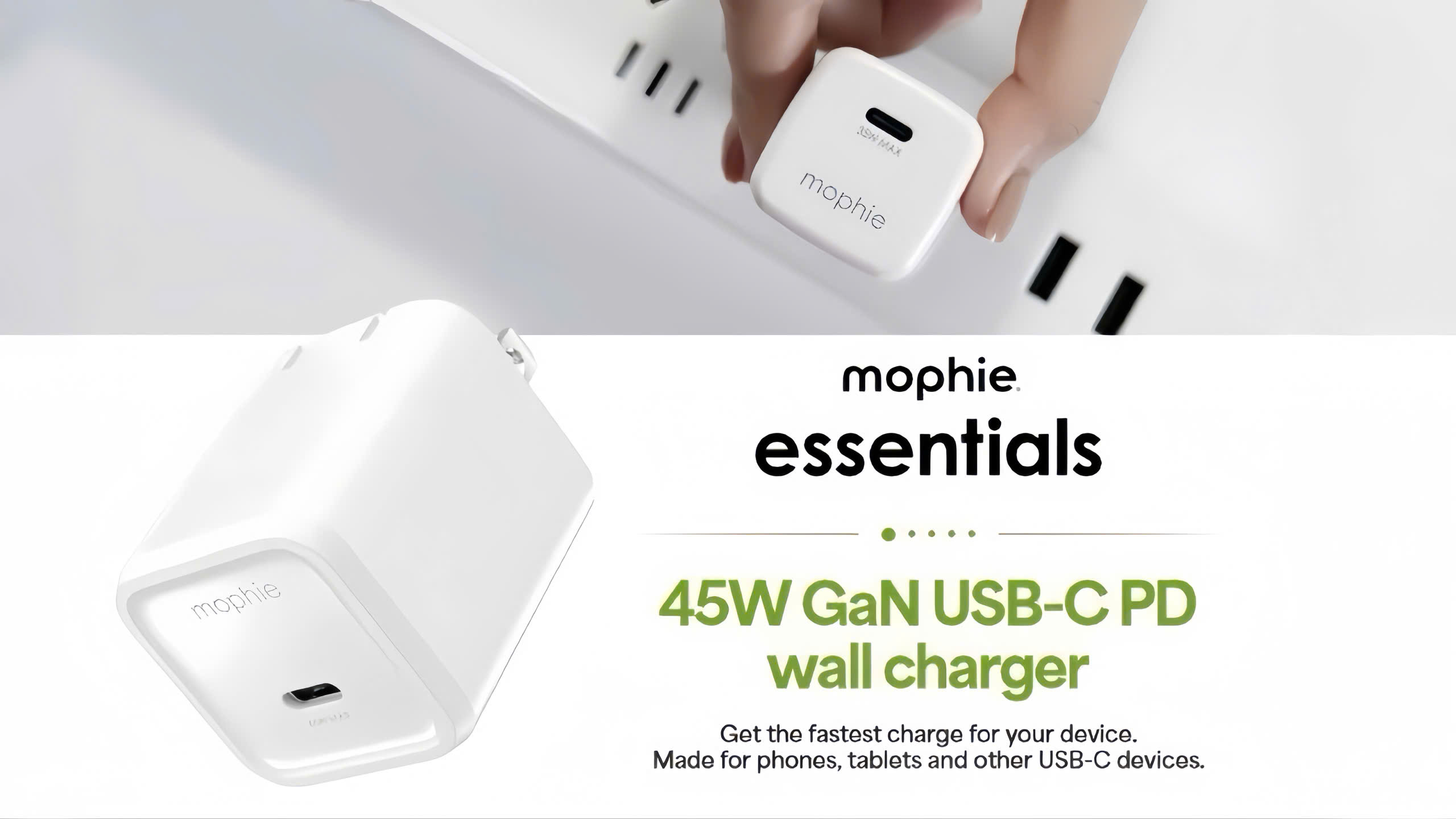 Đặc biệt, dòng sạc mophie Essentials vừa ra mắt, đặc biệt tương thích với hệ sinh thái Apple từ iPhone 17 mới đến, iPad, Mac, AirPods… ứng dụng công nghệ GaN (Gallium Nitride), thiết kế siêu nhỏ gọn, giảm tỏa nhiệt, hiệu suất sạc cao, hỗ trợ Power Delivery (PD) kết hợp PPS (Programmable Power Supply), tự động điều chỉnh dòng điện…