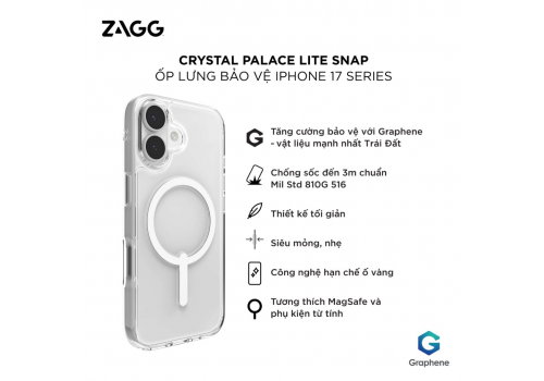 Với những điểm nổi bật từ thiết kế chống sốc, chống trầy xước đến vẻ đẹp thẩm mỹ cao, ZAGG Crystal Palace Lite Snap là chiếc ốp lưng hoàn hảo, thanh lịch bảo vệ điện thoại iPhone 17 của bạn toàn diện. ZAGG - Thương hiệu phụ kiện uy tín từ Mỹ.