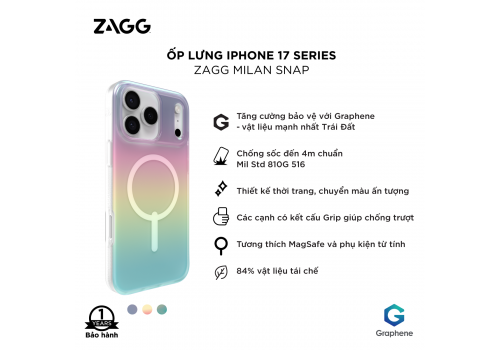 Trong thế giới công nghệ, một chiếc ốp lưng không chỉ là phụ kiện bảo vệ điện thoại, mà còn là cách bạn thể hiện cá tính riêng. ZAGG Milan Snap mang đến sự kết hợp hoàn hảo giữa khả năng chống sốc đến 4m, chất liệu Graphene siêu bền, và thiết kế thời thượng, giúp iPhone 17 series của bạn vừa an toàn, vừa cuốn hút trong mọi khoảnh khắc.