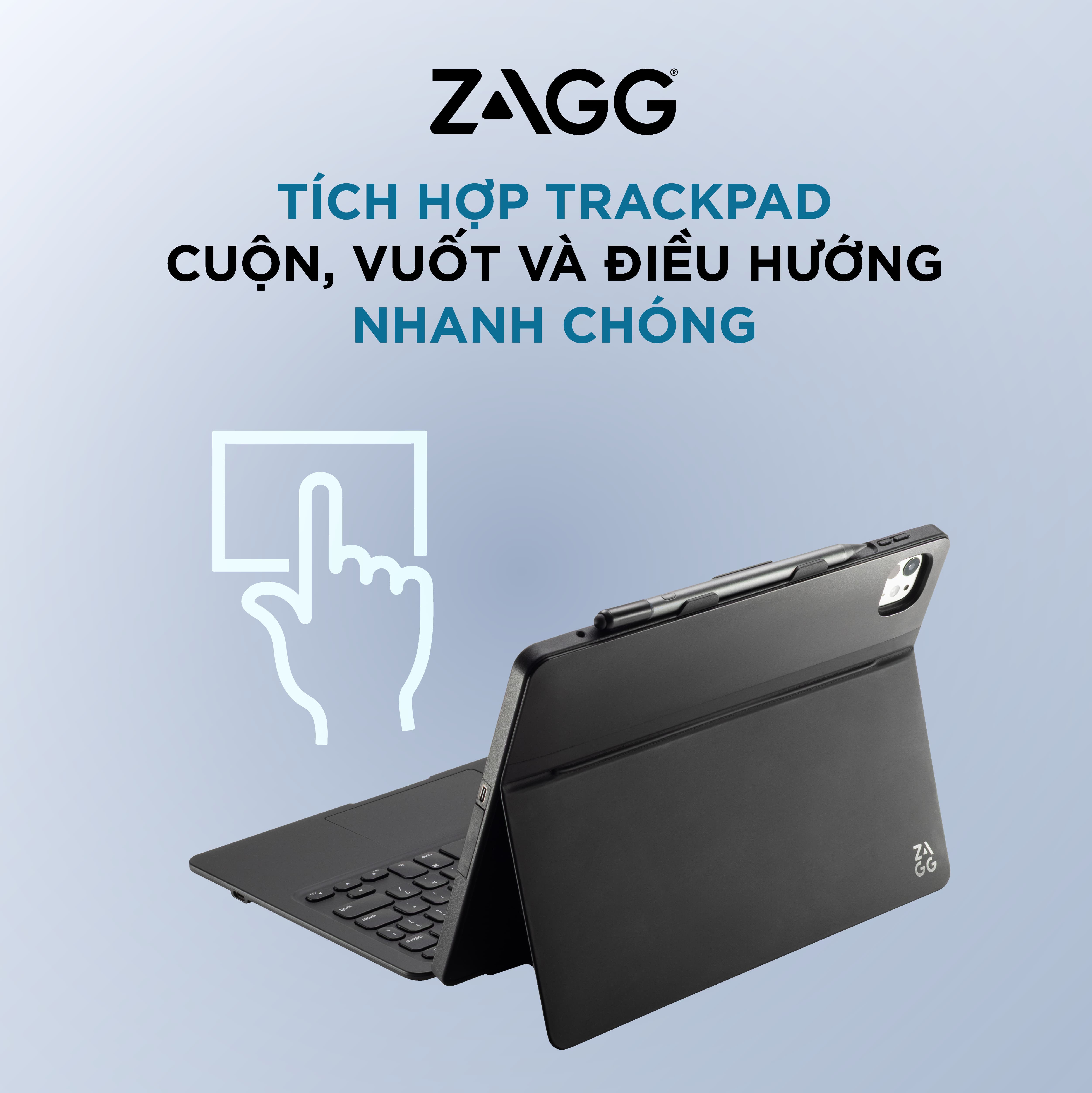 Trackpad tích hợp trên ZAGG Pro Keys Connect cho phép bạn thao tác trên iPad một cách mượt mà và chính xác. Nhờ hỗ trợ các cử chỉ quen thuộc của iPadOS như vuốt, cuộn hay chuyển đổi ứng dụng, việc làm việc, soạn thảo hay duyệt nội dung trở nên thuận tiện.