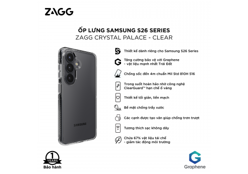 Tên sản phẩm: Ốp lưng Samsung S26 series - ZAGG Crystal Palace - Clear