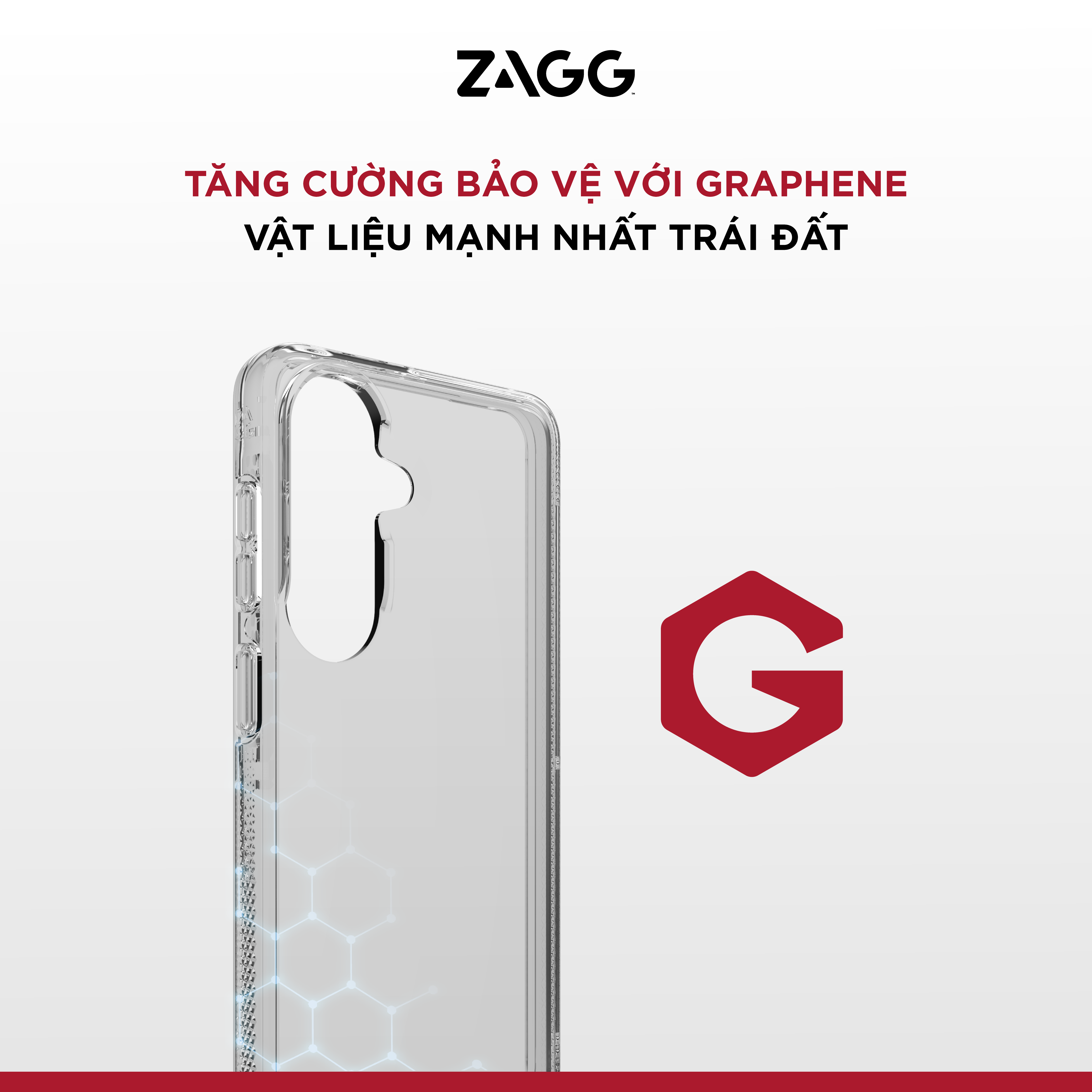 Graphene: một trong những vật liệu bền nhất Trái Đất với sức mạnh bảo vệ bền bỉ, cứng hơn kim cương, đàn hồi hơn cao su và bền hơn thép tới 200 lần. Có khả năng phân tán nhiệt lượng: Graphene là một trong những vật liệu nhân tạo dẫn điện tốt nhất trên thế giới. Những nhà cách tân hàng đầu trong ngành sử dụng Graphene: hàng không, hàng không vũ trụ, thể thao chuyên nghiệp… Ứng dụng Graphene giúp ốp lưng ZAGG có khả năng bảo vệ mạnh mẽ thiết bị vượt trộI.