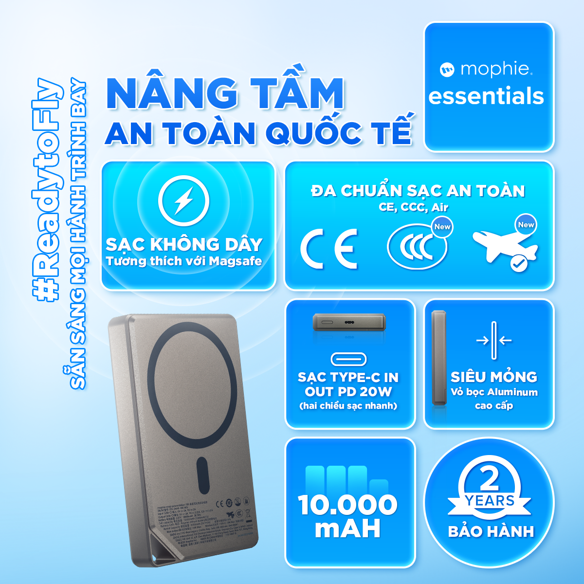 01 Sạc dự phòng mophie Essentials Snap+ 10,000mAh Metallic
